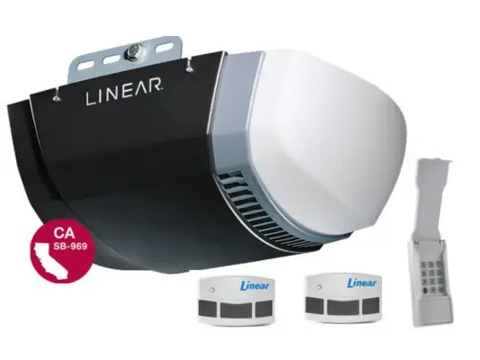 The Linear LDCO801 is a quiet, energy-efficient opener powered by a DC motor for smooth, dependable performance. It includes a courtesy light (standard bulb provided) and a self-monitoring system that continually checks for proper operation. The MegaCode® radio system adds security and flexibility, supporting over a million unique access codes and up to ten user remotes or keypads.